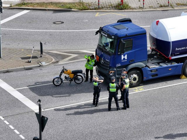 Schwere Unfallrettung am Mittwoch (17.09.2025) in Hamburg-Veddel: Ein 31-jähriger Motorradfahrer auf einer Oldtimer-Simson ist an einer Ampel am Veddeler Marktplatz von einem Lastwagen erfasst und... mehr...