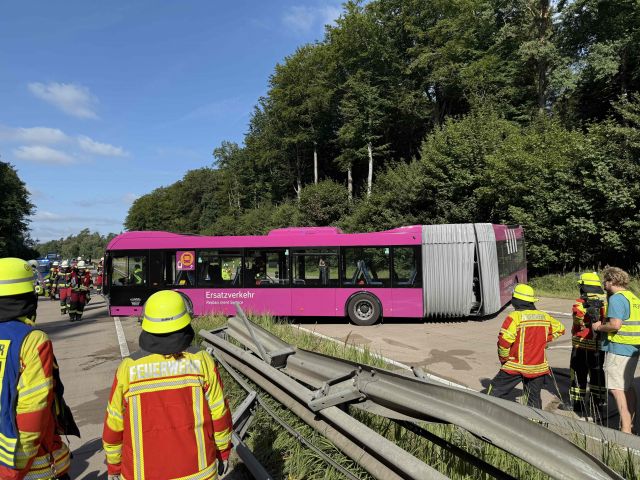 Auf der A24 zwischen Schwarzenbek und Witzhave in Fahrtrichtung Hamburg hat sich am Samstagmorgen (16.08.2025) ein Verkehrsunfall mit einem Schienenersatzverkehrsbus (SEV-Bus) ereignet. Der Bus, der... mehr...