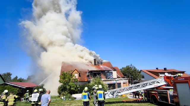 Am Forstweg in Schlammersdorf (Lkr. Neustadt an der Waldnaab) ereignete sich am Montag (11.08.2025) ein Dachstuhlbrand. Das Dach wurde zur Brandbekämpfung komplett geöffnet. Rund 120 Einsatzkräfte ... mehr...