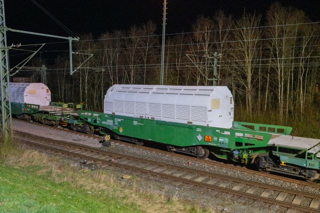 Der Castor-Transport im Hafen von Nordenham (Lkr. Wesermarsch) startete am Mittwochabend (02.04.2025) seine Reise in Richtung Bayern. Die sieben Behälter wurden vom Schiff auf Wagons verladen und... mehr...