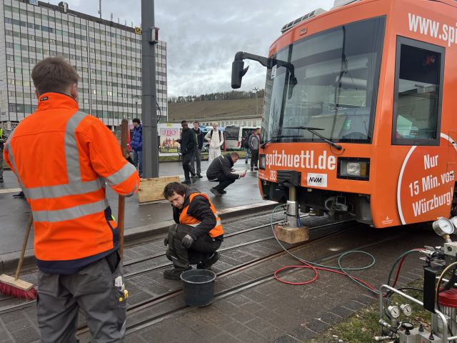 Am Montagmorgen (27.01.2025) kam es im Würzburger Berufsverkehr zu einem ungewöhnlichen Unfall. Eine orangene Straßenbahn war auf eine weitere Bahn aufgefahren und hatte diese auf eine dritte... mehr...