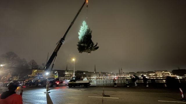 Am späten Sonntagabend und typischen Hamburger Wetter (20.11.2023) war es wieder so weit, die große Alstertanne kam an der Lombardsbrücke und wurde auf ihr Ponton gehoben. Die Nordmanntanne aus... mehr...