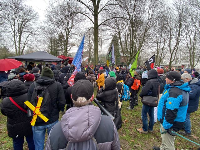 Am Sonntag (22.01.2023) demonstrierten zahlreiche Menschen gegen die Räumung von Lützerath. Die Menschen versammelten sich im nahegelegenen Keyenberg und zogen dann über die Straße L12, mit Blick ... mehr...