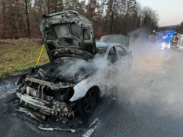 Am Sonntag (15.01.2023) kam es auf der B2, Heroldsberg in Fahrtrichtung Nürnberg, kurz nach der Anschlussstelle A3 und B2 zu einem Brand eines Autos. Ein Mercedes C200 brannte dabei komplett aus. In ... mehr...