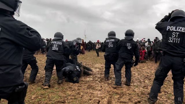 Die Polizei räumt aktuell am Mittwoch (11.01.2023) den Ort Lützerath. Aktivistinnen besetzen eine Halle im Ort. Vom Dach aus wurden Beamte mit Dreck beworfen. Die Polizei muss festgeklebte... mehr...