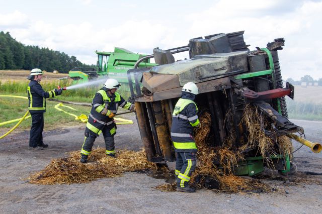 Lichterloh brannte eine Strohballenpresse am Samstagnachmittag (31.07.2021). Auf einem Feld bei Thann, einem Ortsteil von Neustadt bei Coburg geriet bei Arbeiten eine Presse in Brand. Der Bauer... mehr...