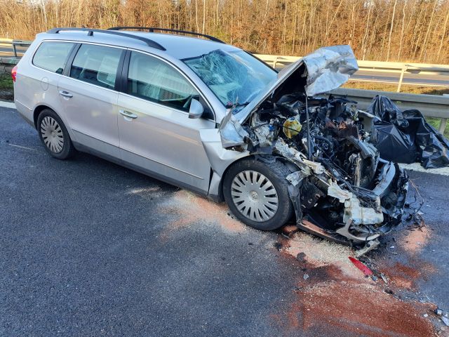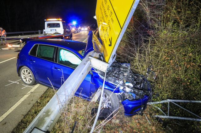 Ein stark deformierter Golf, der unter einer Leitplanke steckt und ein Verkehrsschild in der Windschutzscheibe - dieses Bild bot sich den Einsatzkräften am Donnerstagabend (17.12.2020) auf der... mehr...