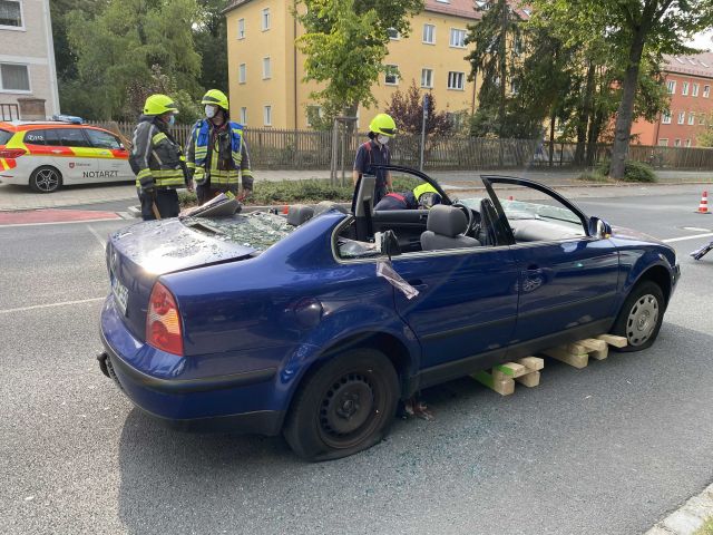 In der Bahnhofstraße in Stein (Lkr. Fürth) kam es am Donnerstag (24.09.2020) zu einem Auffahrunfall zwischen zwei Fahrzeugen. Die beiden Autos wurden bei der Kollision nicht stark beschädigt, jedoch klagte eine Person über Nackenschmerzen, woraufhin der Notarzt eine schonende Befreiung aus dem Wagen anordnete. Hierfür entfernte die Feuerwehr das Dach mit schwerem technischen Gerät. Zwei Personen wurden bei dem Zusammenstoß leicht verletzt und kamen zur weiteren Behandlung ins Krankenhaus. Die Bahnhofstraße wurde kurzzeitig komplett gesperrt.