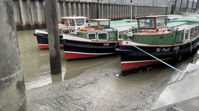 Am Donnerstag (19.10.2023) gab es in Hamburg eine Sturmebbe. Dabei handelt es sich um ein seltenes Wetterphänomen, wobei der Wind das Niedrigwasser verstärkt. Am Hamburger Hafen führte das extreme Niedrigwasser dazu, das Schiffe teilweise nicht ablegen konnten. Das Wasser liegt ein Meter tiefer unter dem normalen Niedrigwasser. Am Freitag (20.10.2023) soll das Wasser sogar zwei Meter unter dem normalen Niedrigwasser liegen. Barkassen und Anlieger liegen auf Grund. Balasttanks des Kreuzfahrtschiffes Aida wurden aufgrund der Sturmebbe rechtsseitig gefüllt, damit die Passagiere in das Schiff einsteigen können.