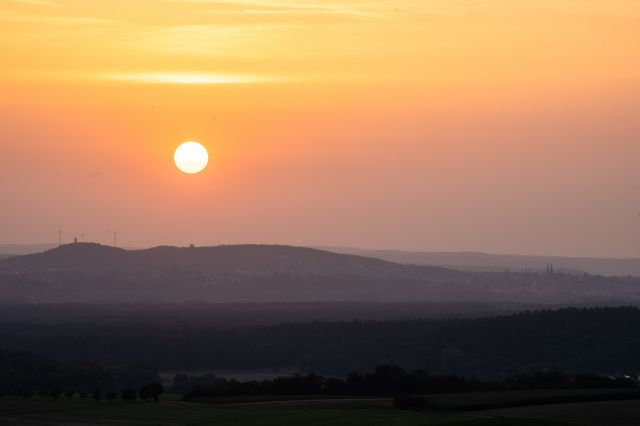 Nicht nur die Temperaturen von über 36 Grad lassen uns gerade schwitzen wie in der Wüste, auch der Saharastaub verwandelte den Horizont am Abend in einen ganz besonderen Look. Der Blick in die Ferne am Donnerstagabend (14.08.2025) war über Bamberg stark eingetrübt und etwas verwaschen. Die Himmel leuchtete in einem kräftigen Orange und uns noch einmal mehr Hitze-Feeling gebracht. Auch die nächsten Tage bleibt es weiterhin sehr warm bis heiß.