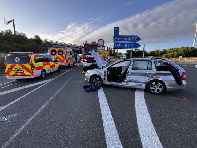 Am Montagmorgen (18.08.2025) kam es auf der Staatsstraße 2192 an der Auf- und Abfahrt zur A93 bei Regnitzlosau (Landkreis Hof) zu einem schweren Verkehrsunfall. Nach ersten Informationen waren ein Lkw und ein Pkw aus Richtung Hof kommend in gleicher Fahrtrichtung unterwegs, als der Pkw-Fahrer aus bislang unbekannten Gründen ein Wendemanöver einleitete. Der Lkw-Fahrer konnte nicht mehr rechtzeitig bremsen und es kam zur Kollision.