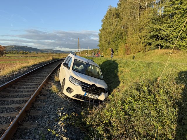 Auf der Kreisstraße FO2 zwischen Wiesenthau und Kirchehrenbach kam es am Montagabend (13.10.2025) zu einem schweren Verkehrsunfall, bei dem ein Auto nach einer Kollision in das angrenzende Gleisbett geschleudert wurde.