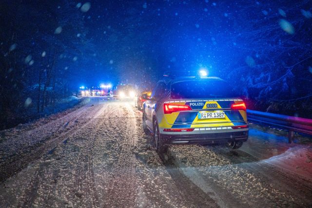 Am Samstagabend (10.01.2026) kam es auf einer winterglatten Strecke zwischen Deining und Greiselbach zu einem Verkehrsunfall. Ein Opel war bergab unterwegs, als der Fahrer auf der schneebedeckten Fahrbahn in einer Rechtskurve ins Rutschen geriet und nach rechts von der Straße abkam.