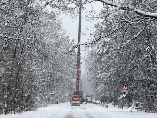 Die Feuerwehr war mit einem Kranfahrzeug im Einsatz, um den Schnee aus den Baumkronen abzuschütteln und die Gefahr zu entschärfen. Aufgrund der aktuellen Wetterlage bleibt die Situation angespannt. Es schneit weiter stark in Nürnberg.