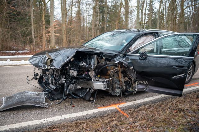 Trümmerfeld auf der Staatsstraße 2239 - Audi kommt auf Gegenfahrbahn und kollidiert mit drei verschiedenen Fahrzeugen - Frontalkollision mit Skoda