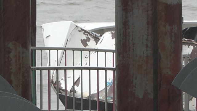 Unfall am Anleger Dockland – Schaden am Bug – Dalben steht schief – Farbabplatzungen noch Tage später am Anleger – keine Verletzten – Wasserschutzpolizei ermittelt
